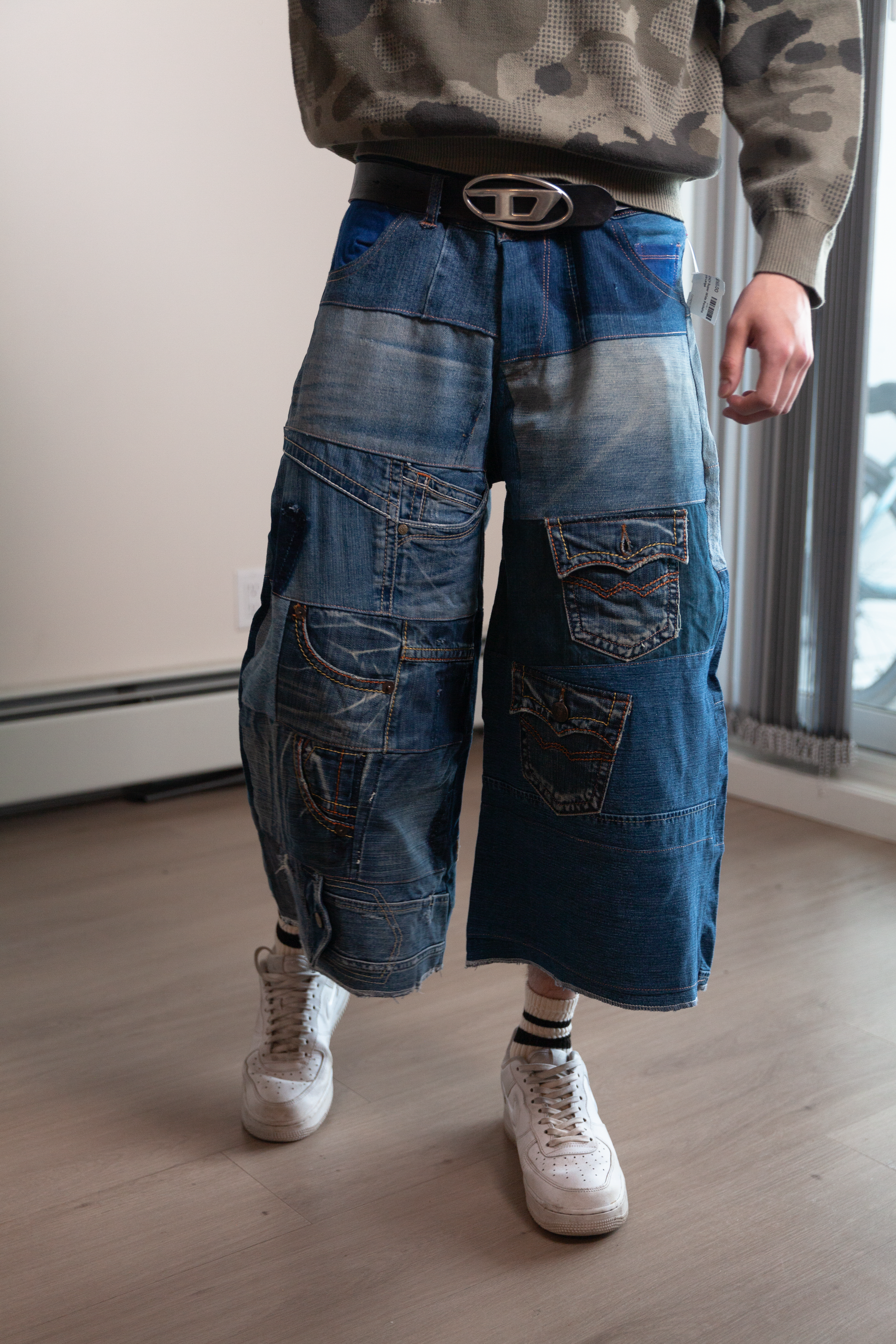 Our Patchwork Cargo Denim Shorts are crafted from a curated mix of upcycled denim fragments, each piece carrying its own story. With a wide-leg silhouette and multiple utility pockets, these shorts balance raw streetwear energy with sustainable craftsmanship. No two are alike.